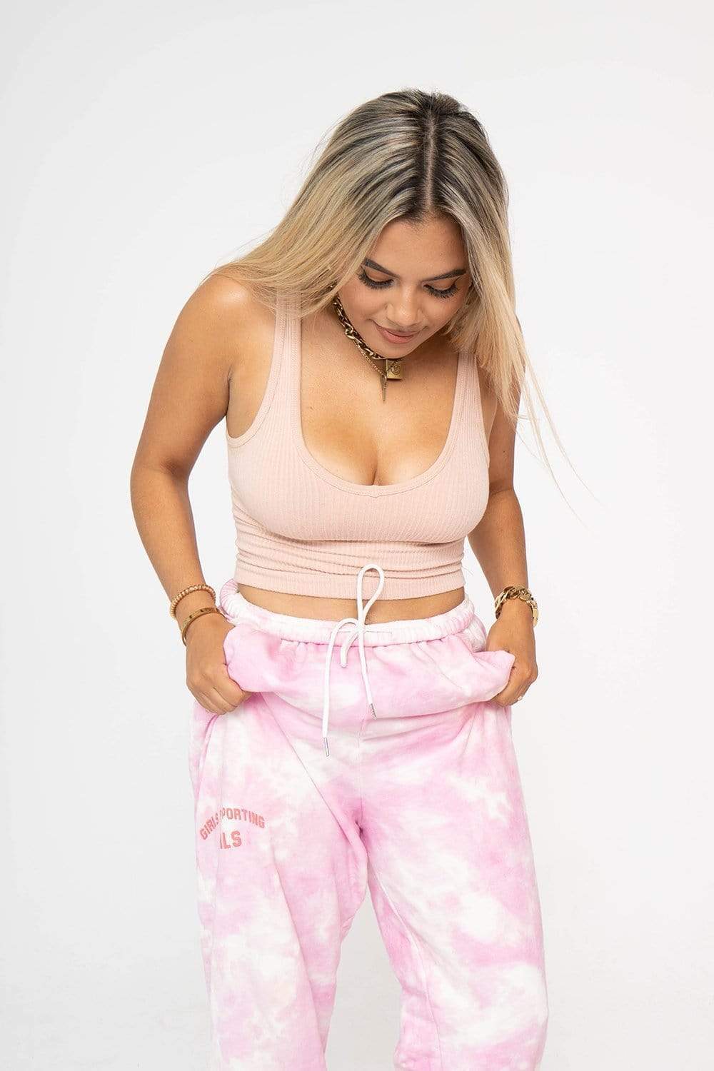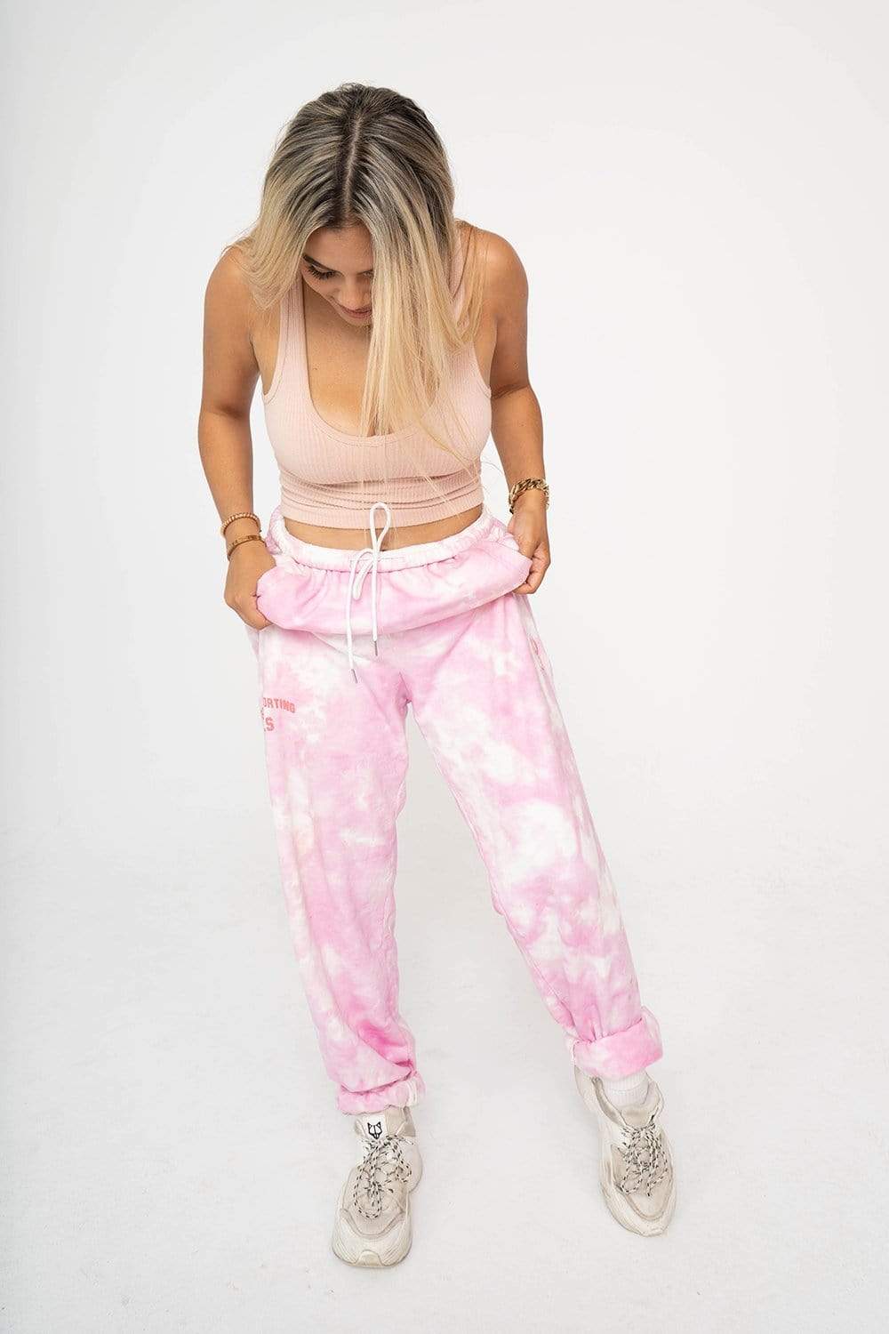 Adelaine Morin 'Girls Supporting Girl's Pastel Pink Tie Dye Sweatpants