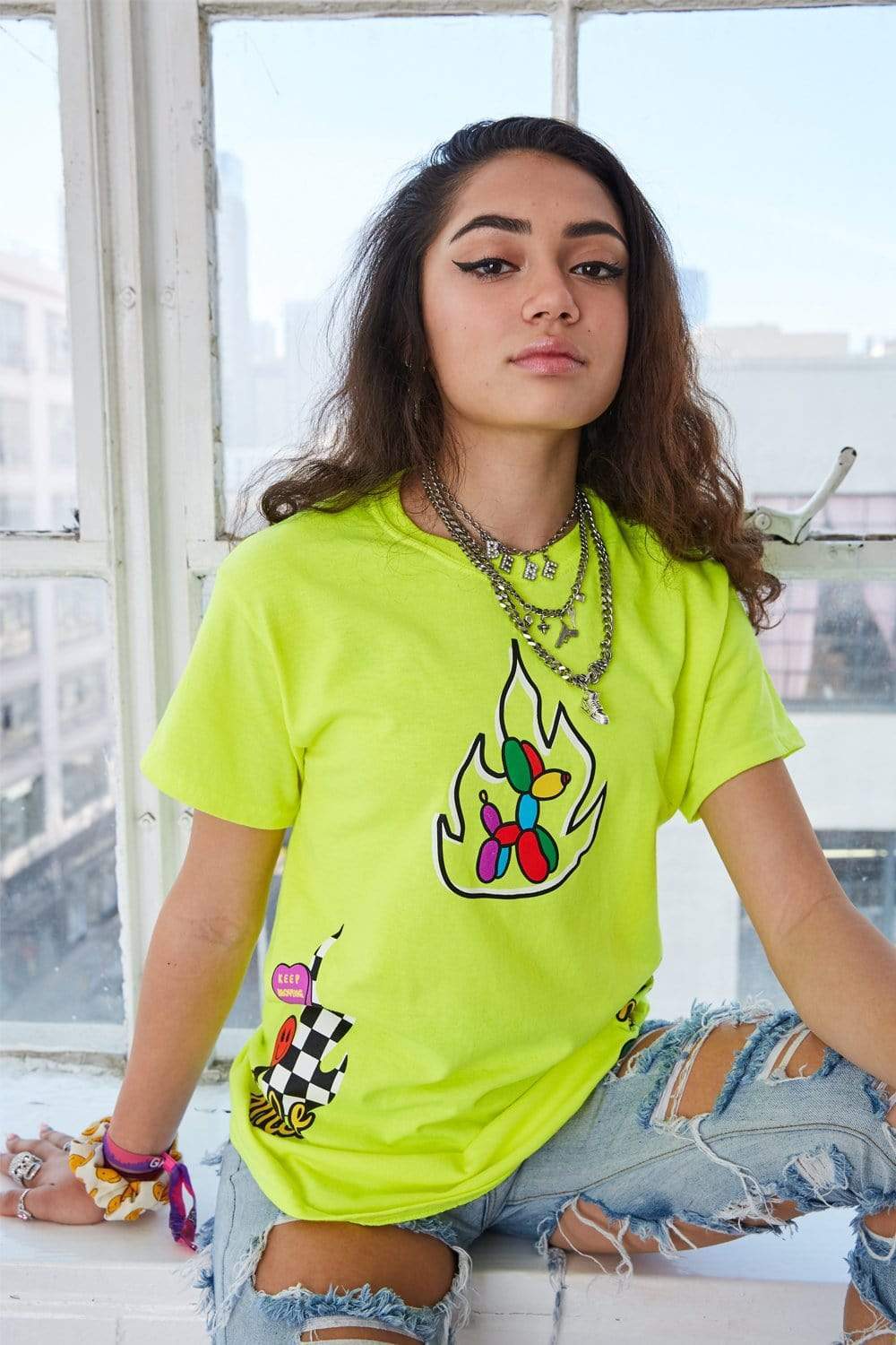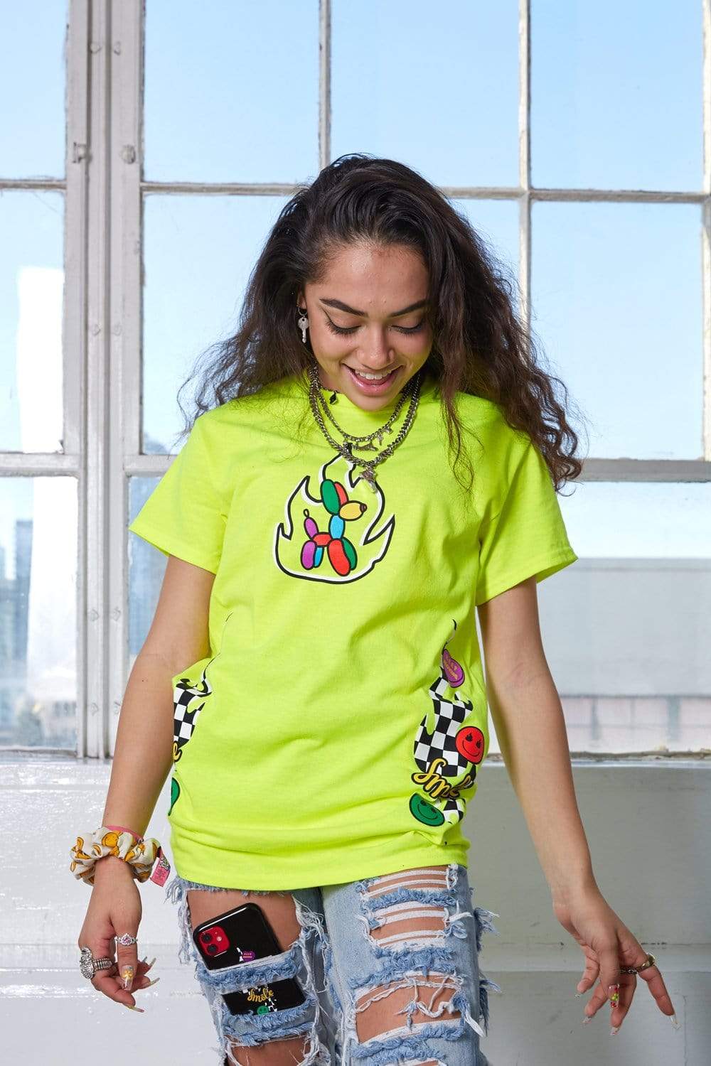 Avani Checkers and Smiles Neon Green Shirt